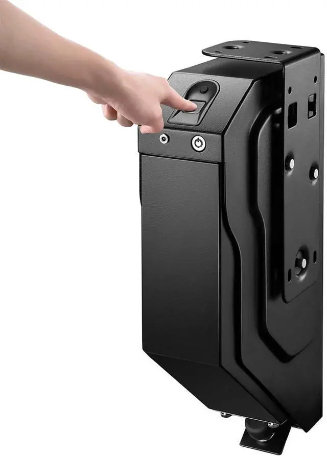 Installs easily with just four screws and stores nicely under a desk or nightstand, discreetly on a bookshelf or in an unobtrusive vehicle. For added convenience, it can be mounted from the right, left or top, depending on your choice