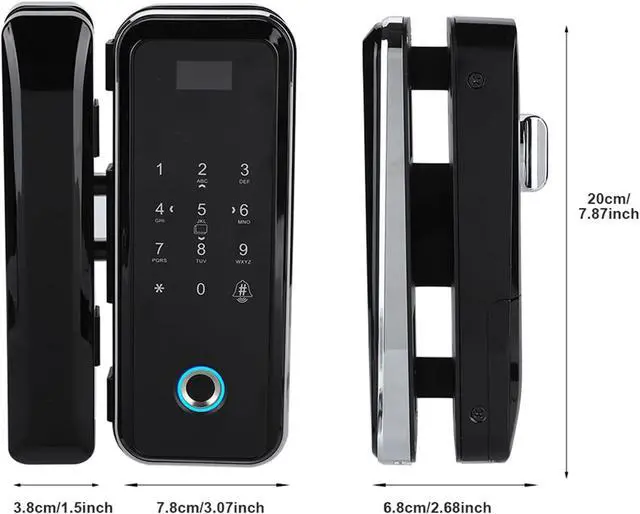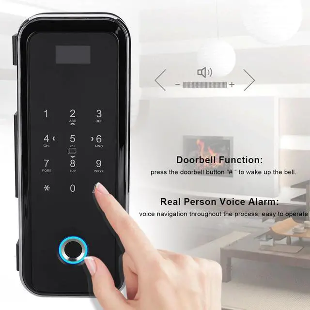 Easy installation: no need to punch holes, external wiring and network equipment required. Wide applicability: frameless/frame glass doors, single / double doors, left / right doors can be installed. Real person voice alarm: voice navigation throughout the process, easy to operate. Various unlocking options: fingerprint, password, credit card and remote control.