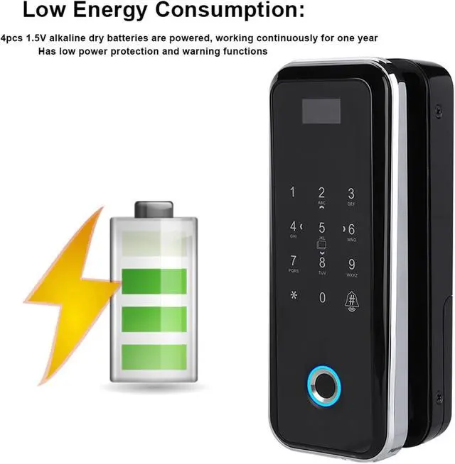 Low energy consumption: 4pcs 1.5V dry batteries are powered. They can work continuously for one year. It also has low power protection and warning functions (about 200 times for unlocking after prompting, please change the batteries urgently).