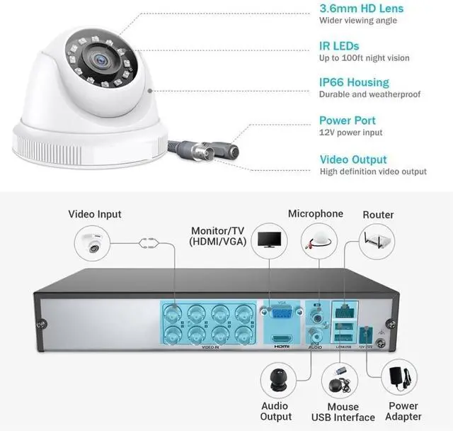 Video Compression:H.264+/H.264/H.265/H.265+ Video Input:8CH Analog HD/Analog+2CH IP camera Video Output: and VGA Up to 1080P Input/Output:1/1 RCA Analog HD Playback Resolution:5MP Lite/3 MP/1080p/720p/VGA/WD1/4CIF/CIF