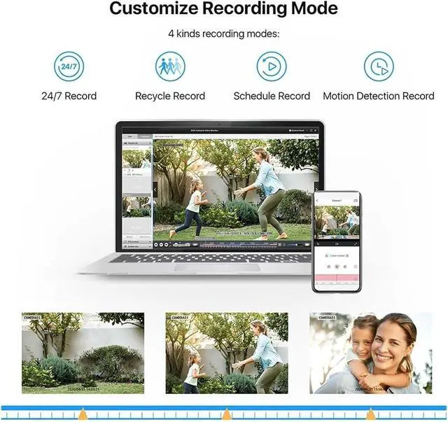 Customize Each Camera with Different Record Modes,DVR offers 4 kinds recording modes to meet your needs: Continuous Record ; Scheduled Record; Motion Detect Record; Recycle Record.You can customize each camera with different recording modes, which allows you to save space on the hard drive.