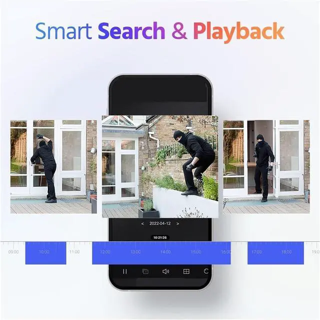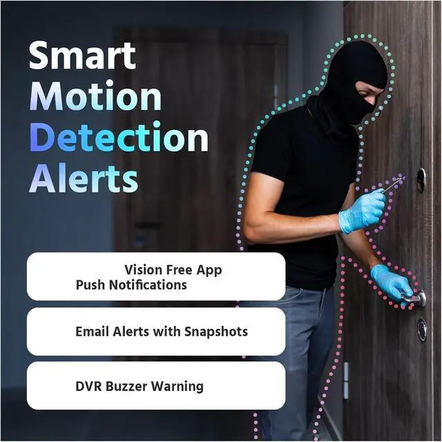 Remote Access & Smart Motion AlertsAccess & control the system via 3G4G/5G or with your smartphones, tablets, computers remotely. Always receive instant app pushes and email alerts with snapshots, whenever events occur.