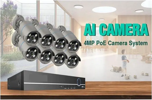 4MP PoE camera system, 8 channel NVR design, support to connect up to 8pcs cameras.