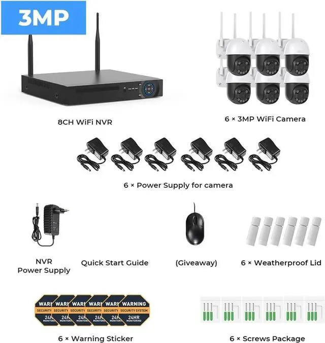 DVR Surveillance Kits, 8CH 5mp Camera Security Kit System Wireless CCTV System NVR Outdoor Ptz Two-Way Video Surveillance(None,3MP 6PCS Camera)