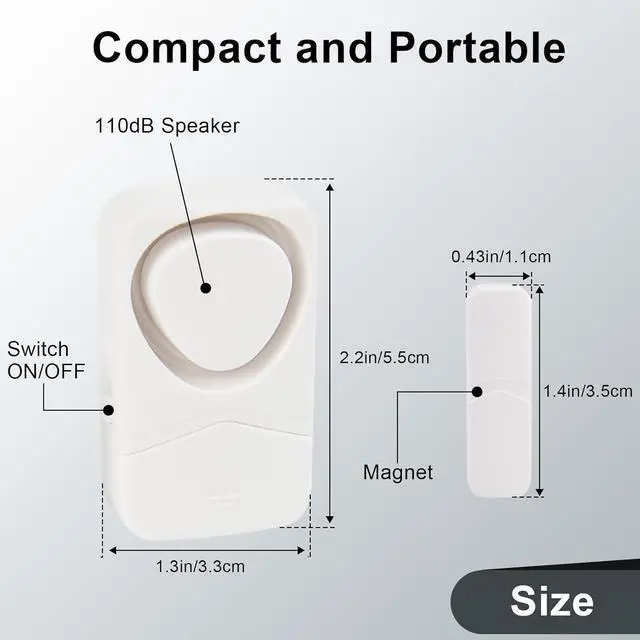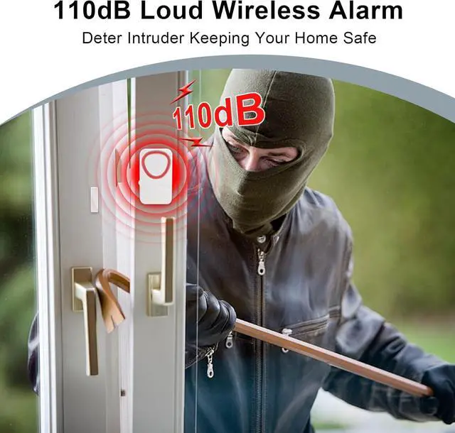 Super Loud AlarmBuilt-in 110dB ultra-loud alarm sound design, once the door or window is detected abnormally open, a strong alarm sound will be emitted immediately, effectively deterring intruding burglars and protecting your property safety.