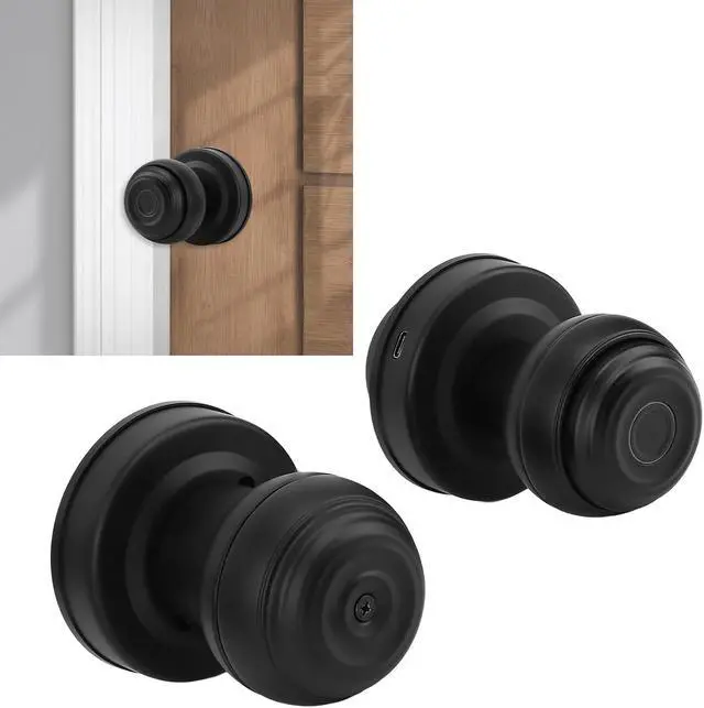 [Long Battery Life] Operating on 4 batteries, this fingerprint ball door knob offers up to 12 months of battery life, features a low battery warning system, and includes a usb charging port for emergencies, with 2 mechanical keys as backup.