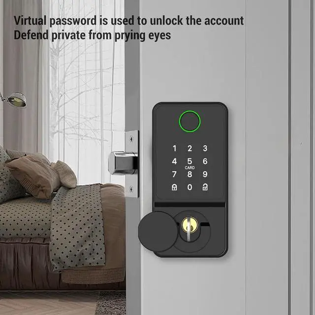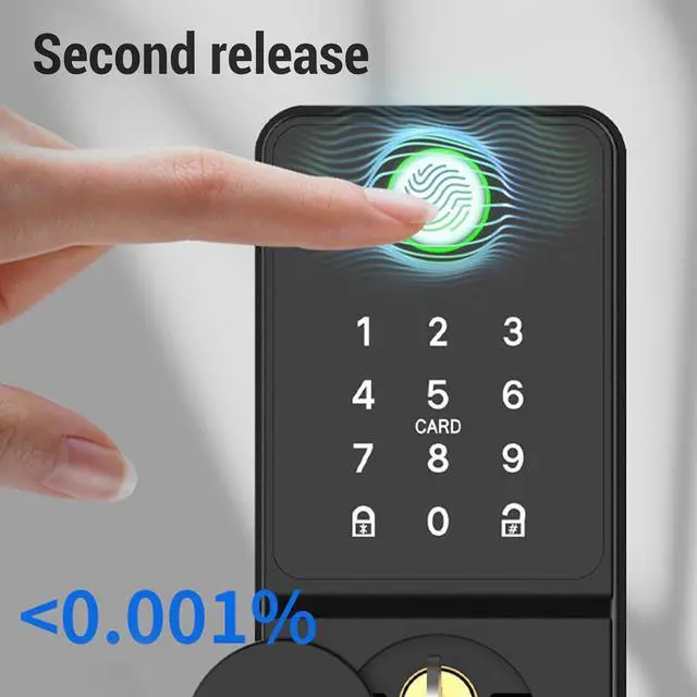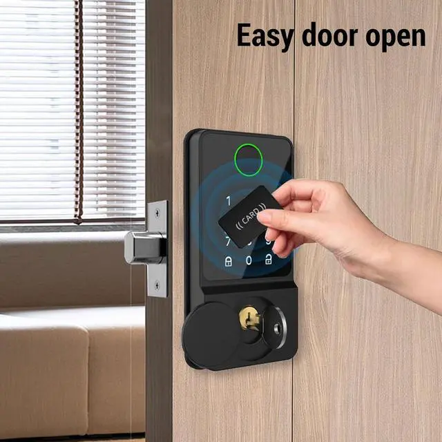5 Unlock Modes: Our smart door fingerprint lock offers five convenient unlocking methods, fingerprint, card, password, mechanical key, and Wi Fi connected app for unmatched flexibility and ease of access.