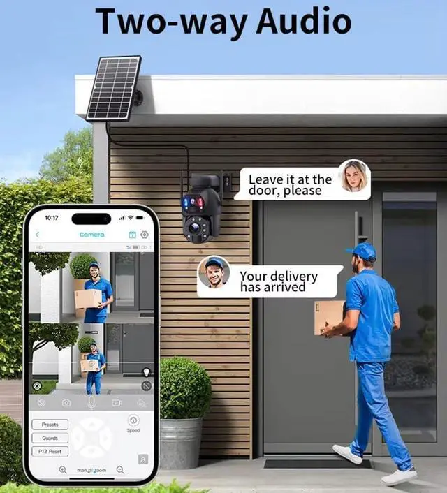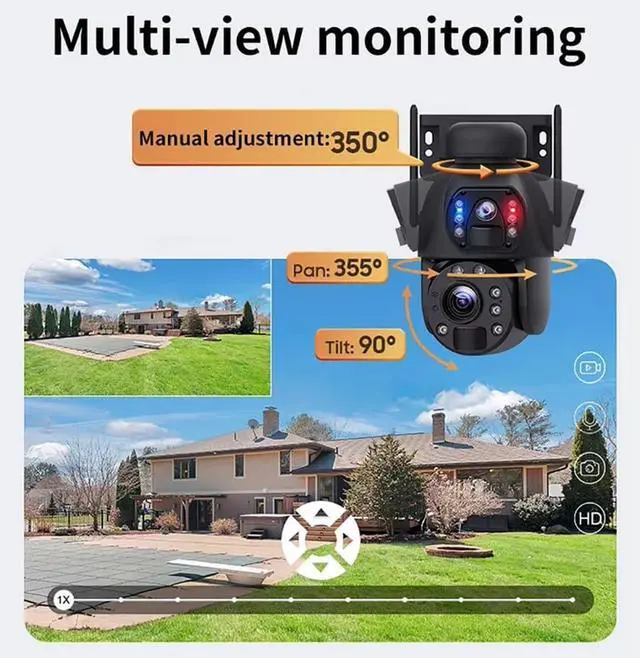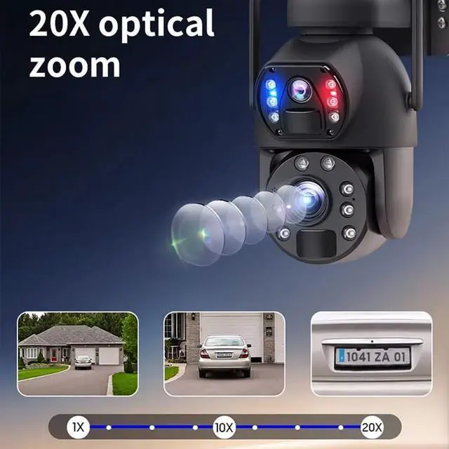 20X Optical Zoom Dual 360° Viewing Angle: Solar camera with 20X Optical Zoom,allows you to clearly zoom in on distant objects(license plate number can see).Dual screen supports 355 ° horizontal and 90 ° vertical rotation, can be easily controlled through an application to capture a wider range