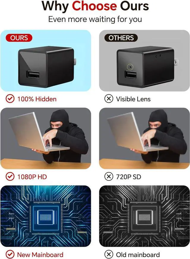 This plug-and-play Full HD 1080P camera requires no internet or Wi-Fisimply connect it to a power source to start working. After recording, use the included USB cable to transfer content directly to your computer, making it extremely user-friendly. Equipped with a 64GB storage card, it allows seamless video recording and playback. Compact and portable, its easy to carry outdoors. Beyond functioning as a camera, This camera can charge your other electronic devices. Its motion detection mode optimizes storage efficiency, conserving space while ensuring reliable home security. A perfect ally for safeguarding your household.