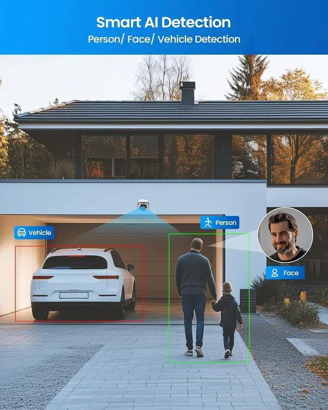 Smart Person/Vehicle Detection & Instant Alerts--Advanced AI accurately distinguishes people & vehicles from other motion, reducing false alerts by 90%. Get real-time notifications via app alerts, emails alerts when threats are detectedensuring you never miss critical events.