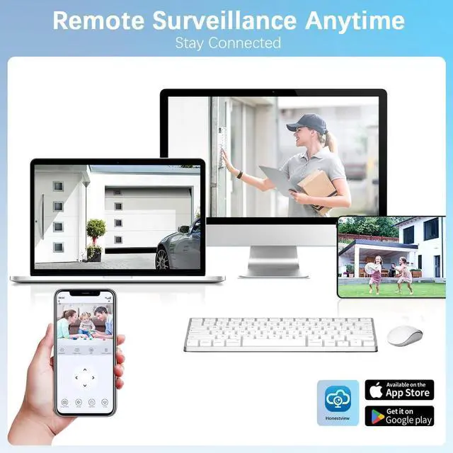 No Monthly Fees for the AppDownload the free "HonestView" app from the App Store to remotely view your videos on your smartphone (iOS & Android), PCs, or tablets. This wired security camera system, which includes night vision cameras, offers a convenient and cost-effective solution for home security. It's also suitable for businesses in need of a reliable security camera system. The wired cameras for home security are easy to set up and compatible with the "sistema de cámaras de seguridad para casa" as well.