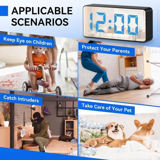 DISCREET DESIGN: Cleverly concealed as a digital clock with dual alarm function, measuring 5.7x1.18x2.5 inches for inconspicuous monitoring