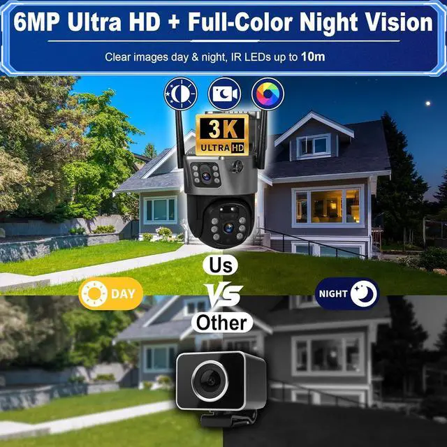 6MP HD & Full-Color Night Vision Delivers 2304*2592 live streaming and recording with 6MP ultra-clear resolution. Full-color night vision and IR LED up to 10m keep images sharp day or night.
