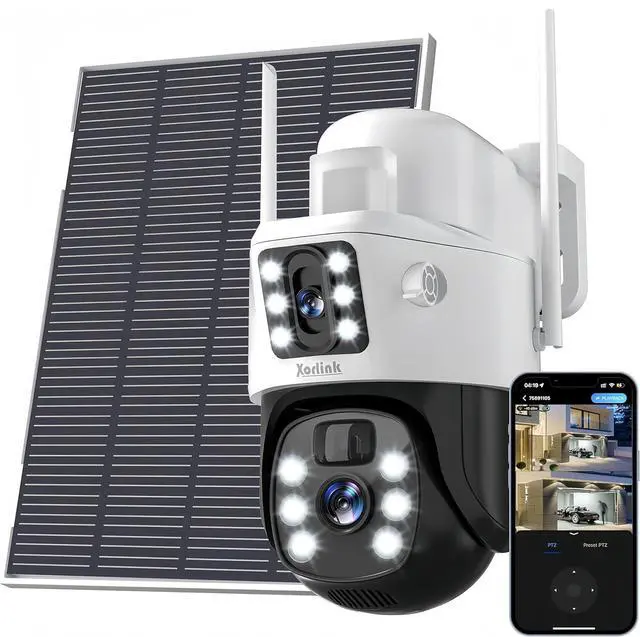 8MP Dual Lens HD Image&360° View: Take a panoramic shooting and make sure no blind spots or zone,and get great video quality. Great IR night vision in darkness as well as Color night vision enabled by 12 powerful spotlights.