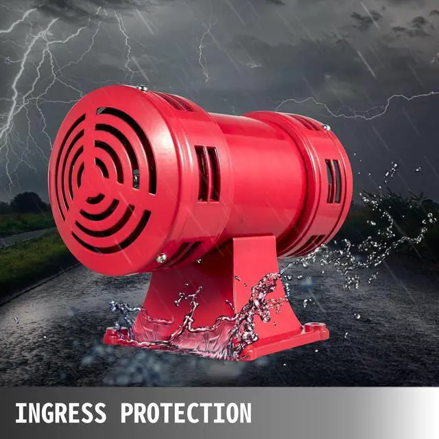 CONSTRUCTION- The housing is made of high-quality Iron with red paint, ensuring great performance and durability. Metal mesh covers installed in two horns protect the motor siren.