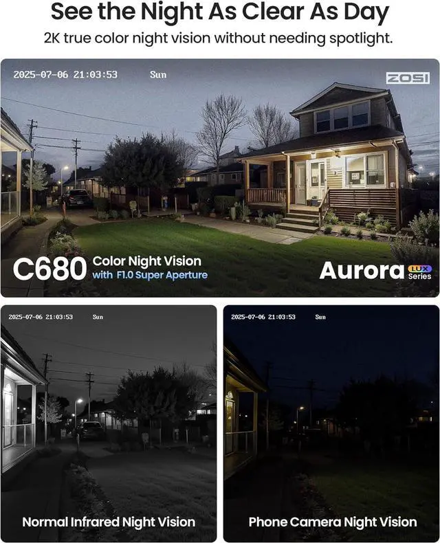 (5). [ 2K HD with Full-Color Night Vision in Low Light ] __ See every detail, day or night. With an F1.0 large-aperture lens and advanced low-light technology, the C680 delivers full-color images even in dim environmentsproviding better visual evidence than traditional infrared black-and-white. Spot a package at midnight, a pets nighttime antics, or a visitors face in dim lightway better than traditional infrareds flat grayscale.