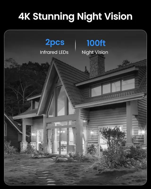 (2) [ 4K 8MP UHD & Low-Light Night Vision ]__ Equipped with a high-performance 8-megapixel 1/2.7-inch high-resolution CMOS sensor, the 4K 8MP UHD resolution delivers stunning visual effects. Thanks to advanced night vision functionality and an automatic infrared cutoff filter, it achieves exceptional image and video quality in low-light conditions.