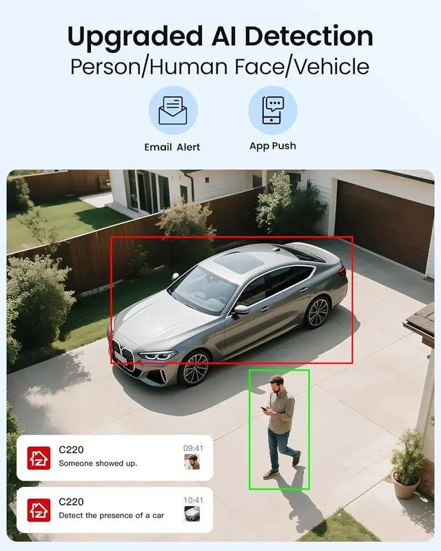 (3). [ AI Smart Detection & Instant Alerts ]__Minimize false alerts with the latest person and vehicle detection feature, customizable to your preferences. Receive quick alerts and monitor them conveniently using the user-friendly ZOSI Smart App. Stay informed with real-time threat alerts, receiving instant app pushes and email alerts, along with relevant snapshots within customized detection areas.