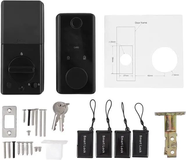 5-in-1 Unlocking SystemThe fingerprint door lock has five different unlocking methods to choose from, including fingerprint, mobile app, ic card, password and mechanical key, providing you with a variety of safe and convenient entry and exit methods.