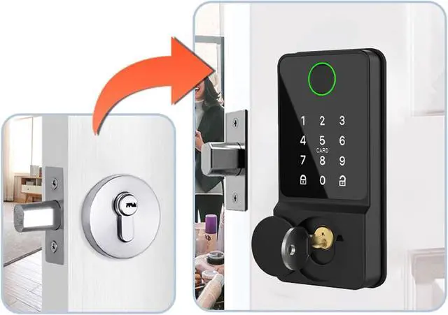 Upgrade Fingerprint SensorThe keyless entry door lock has a built-in fast and secure fingerprint sensor, unlocking your door within 1 second. It is faster than fumbling for keys, making your life safer and more convenient.