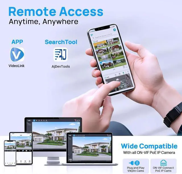 24/7 Audio Video Recording & Software APP8CH NVR can be continuously recorded. When the camera is PoE connected to the NVR, on the computer PC: use the LMSto preview locally; on mobile phone: Use theVideolinkApp to remotely access.