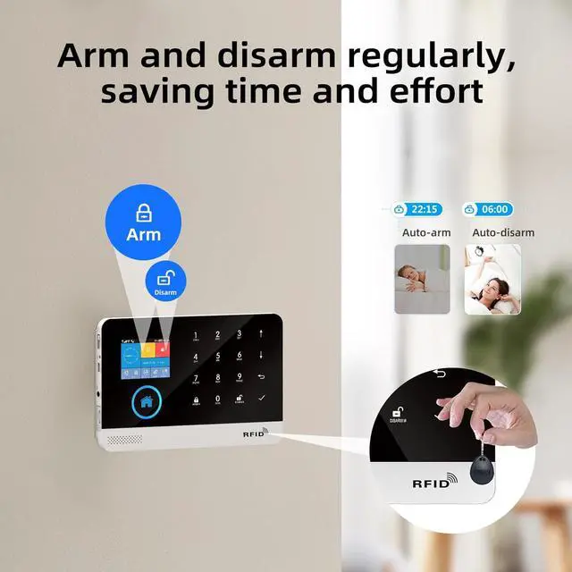 WiFi +4G: Home alarm support Wi-Fi APP push network alarm, SMS, voice monitoring, main network and other multi-channel alarm methods to ensure stable and reliable alarm performance. Up to 100 controllers, RFID cards and wireless detectors learn the storage location.