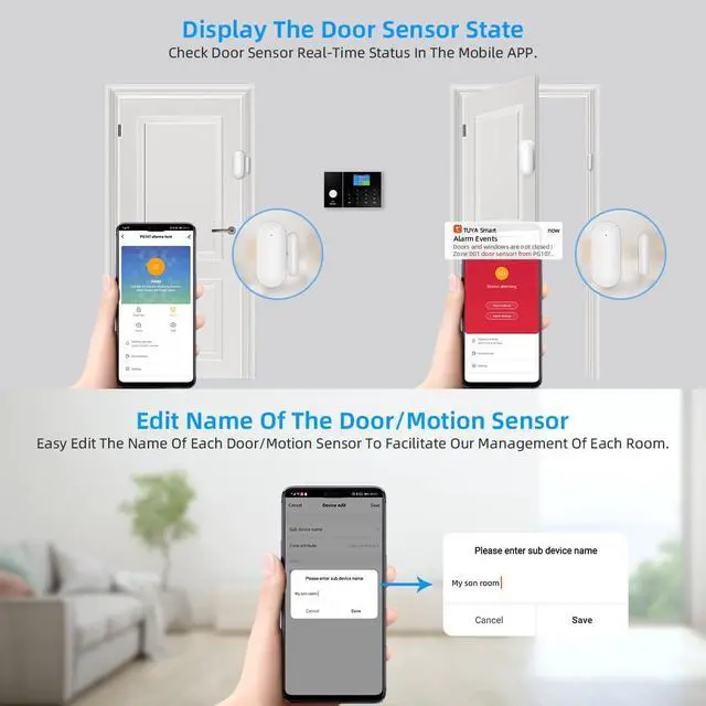 Support Wireless Alarm System NetworkThe central panel has a built-in 4G GSM module. You can set 5 groups of telephone alarm numbers and two groups of SMS alarm numbers. When the alarm sounds, the control panel makes a call and sends an SMS to the previously set telephone number. You can also use cell phones (or landlines) to dial the control panel number or send an SMS to the control panel number