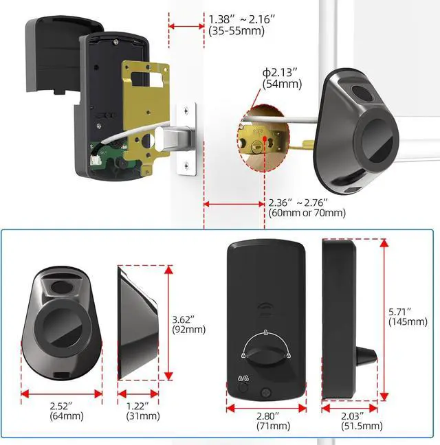 [Easy Installation & Universal Fit] Quick installation on doors 35mm-50mm thick, with adjustable opening direction for left and right doors.
