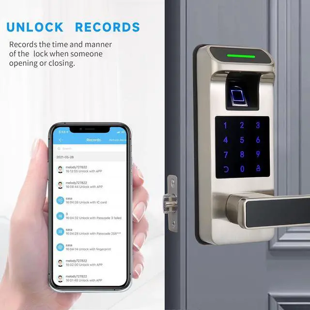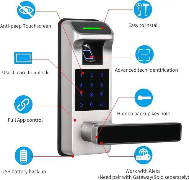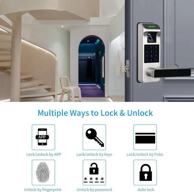 [All-in-1 Fingerprint Door Lock] APP control + Fingerprint + Passcode +IC Cards (Include 3) + Backup Keys. Work with Alexa and Google Assistant & Support Voice Control (Need to pair with gateway, sold separately)