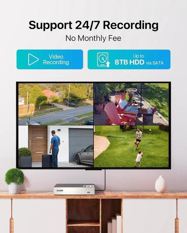 Remote Access Anytime, AnywhereStay connected to your property 24/7 with the free ZOSI Smart app! Monitor all cameras in real-time from one easy-to-use interface on your smartphone or tablet (iOS/Android). Enjoy live viewing & playback via Wi-Fi, 4G/5G, or any internet connectionperfect for checking your home, business, or vacation property while away.