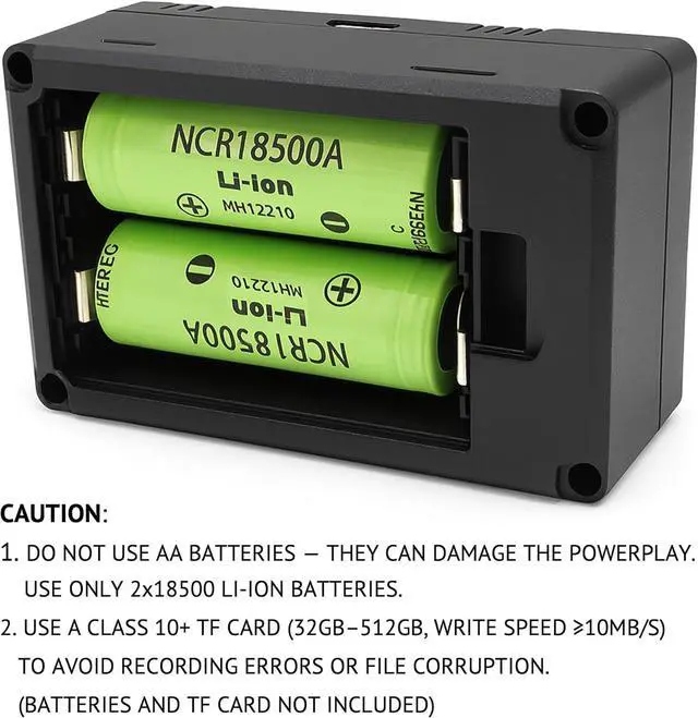 Complete Kit Ready to Use Includes PowerPlay DVR, clip mount, and AV cable. Features built-in rechargeable battery support (battery not included) and a power indicator for uninterrupted recording. Suggest use 2X 18500 LI-ION CELLS as the power section.