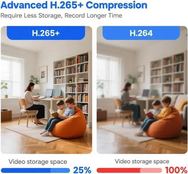 Superior 8MP High-Definition Imaging: Experience exceptional clarity and detail with 8-megapixel resolution. Coupled with advanced H.265+ compression technology, it ensures crystal-clear video while significantly optimizing bandwidth usage and storage space.
