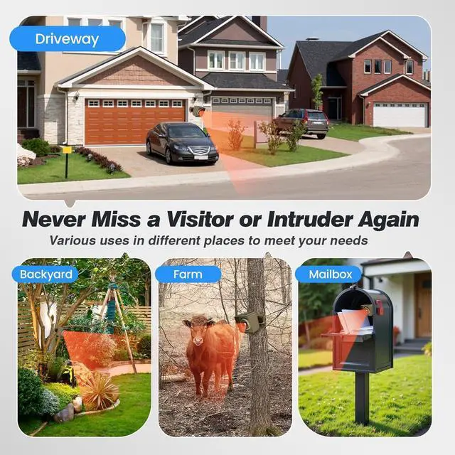Instant Alerts for Peace of Mind: Worried about intrusions? The Chtoocy driveway alarm instantly detects motion and alerts you in real time. Whether its your driveway, gate, garage or perimeter, enjoy reliable protection and a worry-free lifestyle.
