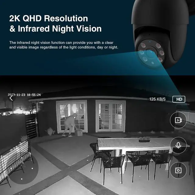 2K QHD Resolution Video & Color Night Vision: Our floodlight camera provide you with 2K QHD video and images (4MP, 2560*1440P). In addition, our outdoor light cameras has full color night vision, which can record full color images both in daytime and at night!