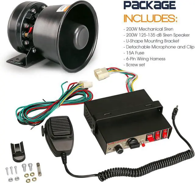 Universal siren compatibility --- This Siren PA System is the perfect choice for vehicles of all sizes, including trucks, SUVs, sedans, compacts, ATVs, UTVs and Police, ambulance, fire, engineer, private vehicles, etc.