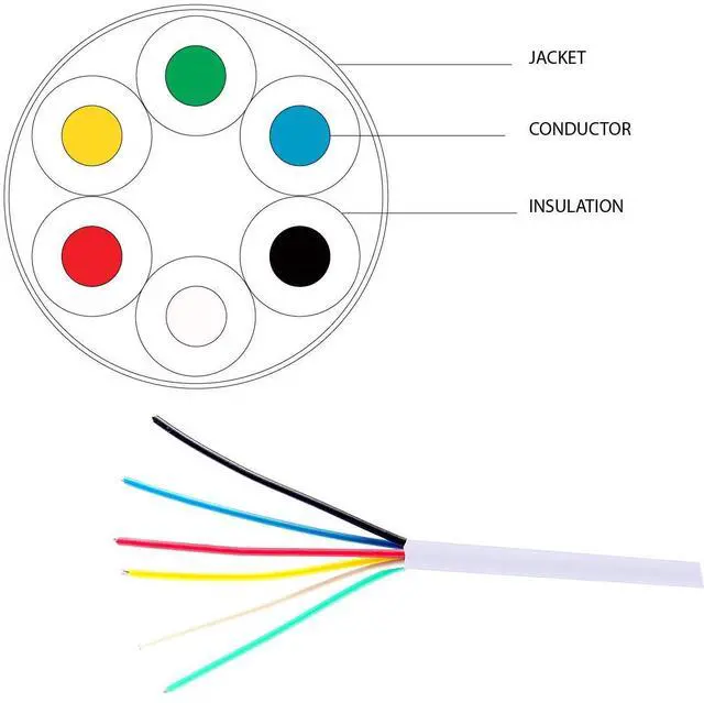 22/6, or 22-6 1000 Ft. for use by professional installer. 22 AWG 6 Pairs Conductors Power Alarm Cable Foot Markings / Indicator Alarm/ Audio security bulk cable with 22 AWG. wire with 6 conductors. PVC. 1000 FT Pull Box White 1000 Ft easy pull box.