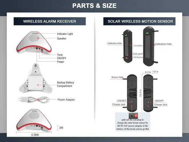 FULLY EXPANDABLE SYSTEM- the kit includes 1 pair solar wireless photoelectric beam sensors and 1 piece AC/Battery powered new version alarm receiver.expandable up to 32 sensors and unlimited alarm receivers for complete coverage of your property. 4 volume levels adjustment and 35 ring tones optional. Match different ring tones with different sensors around your property to differentiate where motion is being detected.