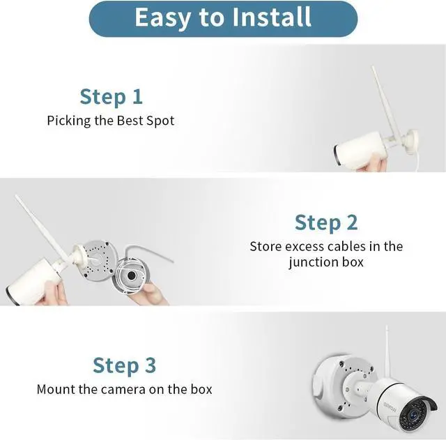 Easy InstallationStart by securing the camera junction box to the wall with screws. Next, run the extra wiring through the center hole of the security junction box. Finally, snap the cover on, and youre all set! This simple process lets you easily mount your security camera while keeping your wiring neat and tidy.