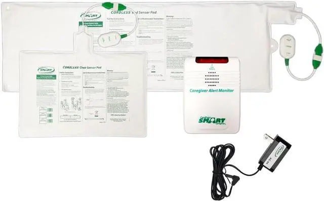 Complete system includes 1 wireless bed alarm, 1 cordless bed sensor pad and 1 cordless chair sensor pad, all items have a 1 year manufacturer warranty. Take the alarm out of the resident's room and in the hands of the Caregiver. Use these product for fall prevention; know when someone is getting out of a bed or chair unattended.