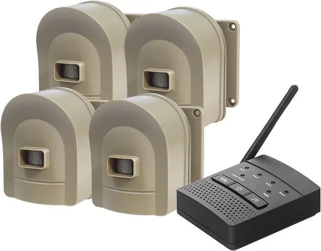 HOSMART ADVANTAGE-30 years+ outdoor driveway alarm wireless and driveway alert system produced in our own factory with our leading edge systems technology.Wireless Driveway Alarm Includes 1 Battery/AC Powered Base Receiver and 4 Sensors.