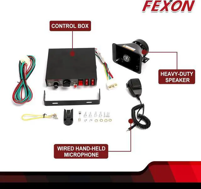WHAT YOU WILL GETPackage include: Emergency Warning Horn siren PA system including a control box, a wired hand-held microphone and a heavy-duty speaker. The warning system also offers two switches which you can use to power external devices and appliances