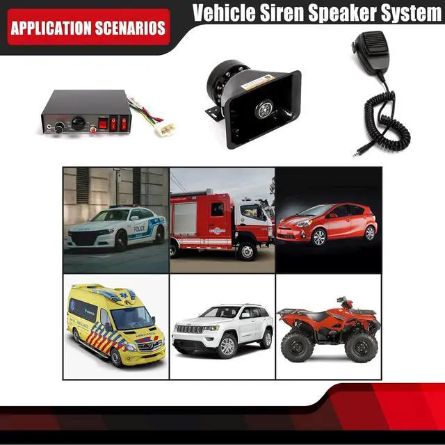 COMPATIBLE WITHCar siren speaker can be installed in any vehicle with 12V DC power. Fit for fire alarm, ambulance, traffic, police, engineer, volunteer, private vehicles etc. The siren built-in 9 kinds of alarm. The alarm can control the two lights on and off, you can adjust the volume by the volume control button