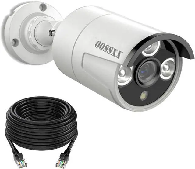 {2.7K / 5Megapixel Super HD} Super HD 5.0MP cameras Capture crystal clear videos day & night. The 3 infrared array LEDs allow you to get high-quality night vision up to 65ft, helping you to protect your property even at night. {Real IP67 Waterproof} The camera is a durable metal camera that can work in harsh environmental conditions. Whether sunny or rainy, the waterproof camera can be placed both indoors and outdoors. So no matter what the weather is, the camera will work 24/7. The camera has IR cut filter with an auto switch and can be viewed even at night {AI HUMAN Detection} With the help of advanced recognition algorithms, OOSSXX will send notifications in real time once abnormal actions.Compared with the traditonal PIR or detection, AI Human Detection can avoid 99% False Alarm by leaves, cloud, animals or insects (This feature can be manually turned on/off) {Audio Camera} With built-in microphone in the camera, our security camera allows you to listen and watch what happened through the APP in your phone clearly and instantly no matter where you are.Please note camera is a one-way audio, you can only hear the other party talking, not the conversation. {Free APP No Month Fee} Download the free app "Honestview" from App Store on your smartphone. With an internet connection, you can watch the videos remotely from anywhere on your phone (IOS&Android), PCs, or tablet