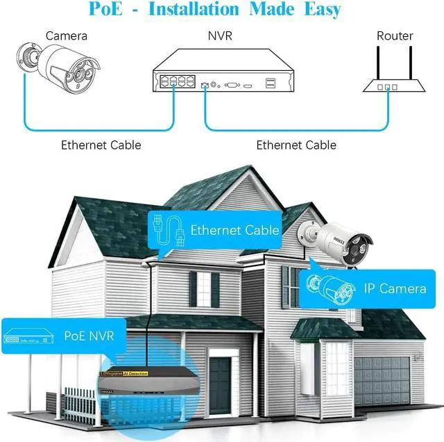 {2.7K / 5Megapixel Super HD} Super HD 5.0MP cameras Capture crystal clear videos day & night. The 3 infrared array LEDs allow you to get high-quality night vision up to 65ft, helping you to protect your property even at night.