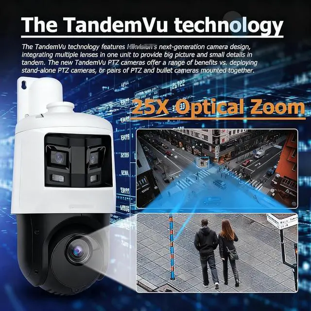 Get the best of both worlds in one powerful PoE camera! This unique unit combines a 4MP high-speed PTZ (Speed Dome) for detailed, zoomable views of specific areas, with a 6MP panoramic lens to provide a constant, wide-angle overview of the entire scene. Never miss a detail with complete 360° security coverage from a single device.