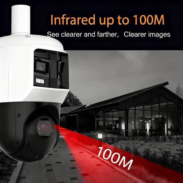 Pinpoint activity with incredible precision. The PTZ camera features a powerful 25x optical zoom, allowing you to clearly see and identify faces, license plates, or other critical details from hundreds of feet away. Combined with 16x digital zoom, you can securely monitor large areas like parking lots, warehouses, and backyards with confidence.