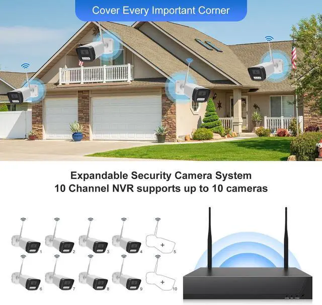 Independent and Comprehensive Security Camera System Outdoor: Experience seamless video recording, playback, and storage directly onto an 10-Channel HD NVR, pre-installed with a 3TB hard disk. The system defaults to 24/7 recording, but allows users to customize their recording schedules for added convenience. Never miss a critical moment with this wireless security camera system.