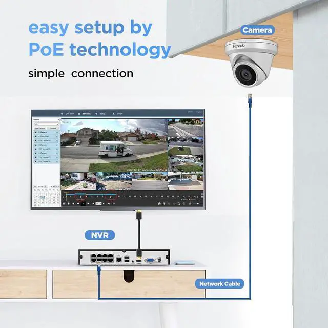 P2P ( Plug and Play): Integrated power over ethernet (PoE) provides simple plug and play installation, it makes full HD video surveillance system without complex configuration. PANNOB PoE NVR support this with only one network cable to transmit video, audio and power, which is suitable for beginners and camera DIY fans to set up their own surveillance system simply and easily.