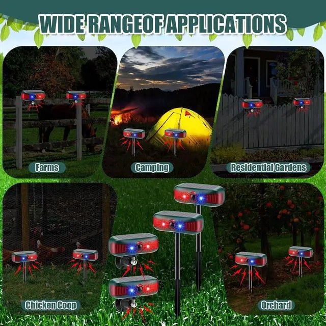 Energy Saving: our solar motion sensor alarm uses sunlight as its power source, a renewable energy that is energy efficient; Prepare it with a full charge under strong sunlight and it will operate without a need for a battery change, providing a reliable barrier to deter deer, wolves, rabbits and other creatures from invading your property