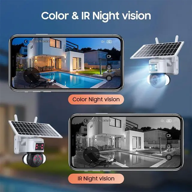 3MP HD & 10 LEDs Floodlight Night Vision - solar wireless camera has 3MP high pixel.(10 LEDs) helps to get Color Full Night Vision Equipped,night vision Infrared Up To 90ft.The Floodlight turn on only when movement is detected at night.(PIR Motion Detection).